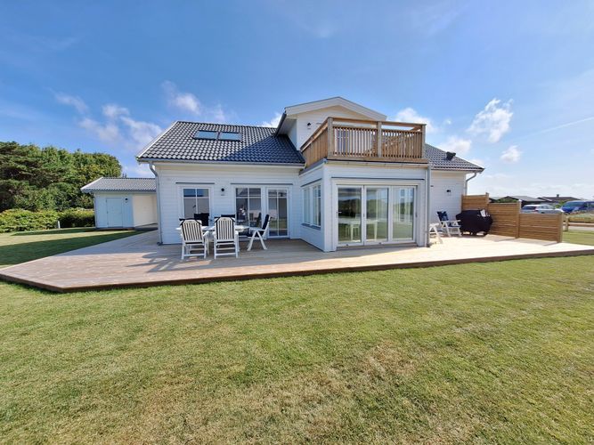 Det generösa, öppna bostadskonceptet förenar vardagsrum, fullt utrustat kök och matplats för upp till 12 personer. Direkt framför köket, burspråket och vardagsrummet finns en stor solterrass (>100 m²) med en ny Weber-grill och ett stort bord för upp till 10 personer.