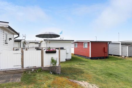 Härligt läge i området med ett mysigt grönområde framför stugans uteplats vilket gör det ostört. Här har man dessutom ett fantastiskt syd-/väst läge med sol stora delar av dagen och kvällen efter en härlig dag på stranden. Uteplatsen är byggd 2023.