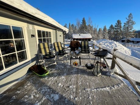 Stugan har en stor härlig och solig terass med perfekt solläge.