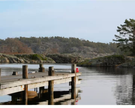 Närliggande hus nyttjar vägen samt den gemensamma badbryggan, båtbryggan och liten sandstrand som endast är 250m promenad från huset.