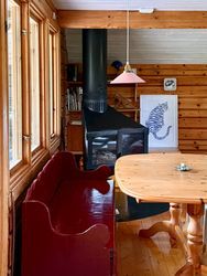 Gedigen stuga med kamin, två terrasser och unika detaljer. På den rymliga tomten finns gäststuga, grill och studsmatta. Här utlovas en drömsemester där allt ni önskar finns i närheten!