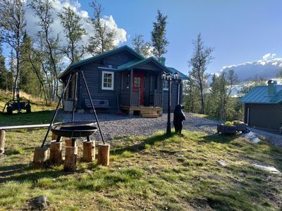 Liten mysig nyrenoverad stuga i genuina fjällbyn Messlingen med fin utsikt över Messlingesjön och Anåfjällen.