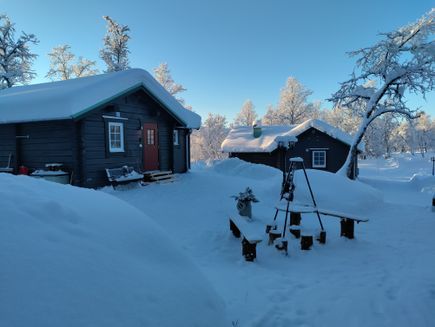 Pistat anslutningsspår till Fjällrikets Baggårdens mycket fina spårsystem för längdskidåkning går c:a 50 m från stugan.