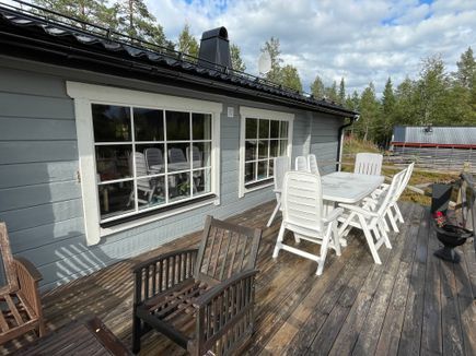 Det finns en stor härlig och solig terass med perfekt solläge. Här kan du njuta av den otroligt vackra utsikten över fjället i bästa solläget.