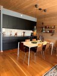Fullt utrustat kök med kyl/frys, diskmaskin och kombinerad ugn/micro. Köksbord med plats för 8 personer.