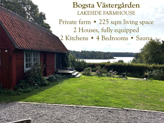 Välkommen till Bogsta By, där den historiska gården Bogsta Västergården ligger vackert med sjöutsikt och sol från morgon till kväll. Här hyr du hela gården för ditt sällskap – två charmiga hus på samma tomt, perfekt för familjer eller vänner som vill semestra tillsammans men ändå ha gott om utrymme. Hela gården hyrs ut till ett sällskap åt gången, vilket ger gott om avskildhet och en privat miljö under vistelsen.