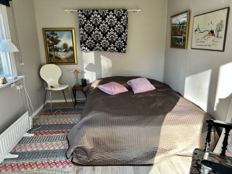 Välkomna till Strömsnäs, Läppe och till denna mysiga stugan nära Hjälmaren. Huset består av 6 bäddar. Två sovrum inne i stora stugan med 1 dubbelsäng i ena och 1 enkelsäng i andra plus ett sovloft med madrass för ett barn under 12 år. I annexet finner ni ytterligare en dubbelsäng.