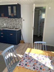 Denna nybyggda stuga passar utmärkt för två personer. Stugan är fullt utrustad med kök i allrummet, badrum och bastu. Bäddsoffa finns i allrummet. Medtag sängkläder och handdukar (kan hyras). På utsidan huset finns utemöbler. Grill finns att låna.