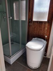 2023 gjorde vi om en liten hall till duschrum, där finns även en förbränningstoa. Vill du hellre gå all in och använda utedass så finns det också.