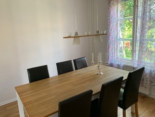 Parhus/lägenhet i större villa (stora utrymmen) i Väskinde 10 km norr om Visby och ca 4 km från kusten och Brissund/Själsö. Parhuset är nyrenoverat och är på 5,5 rum och kök. På övre plan nyrenoverat badrum med dubbeldusch och dubbelhandfat samt tvättmaskin/torktumlare, Separat WC på nb med "sminkhörna" Köket är fullt utrustat med diskmaskin, ugn, spishäll, micro mm. 3 sovrum med resårsängar samt en familjevånings säng, (2 st sovrum på övre plan och 1 minde på nb). Separat tv rum. Tillgång till del i trädgården med trädgårdsgrupp, gungor, spel och grill mm. Eget cykelförråd/förråd i ett enkelgarage, bilplats, möjlighet till elbilsladdning). Bra snabbt Wifi och Teliap play.. Nedre plan: Kök, matrum, tv-rum, toalett, 2 st hallar/ingångar till denna del av parhuset som vetter in mot den lummiga trädgården. På framsidan av huset ligger den mindre parhusdelen som ägarna själva disponerar och bor i under del av sommaren.