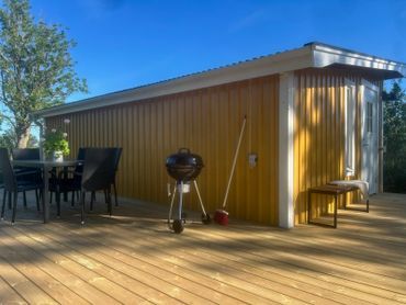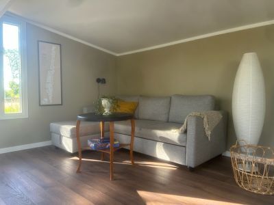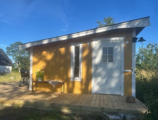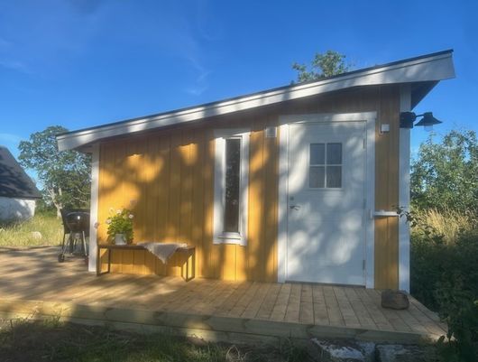 Nyrenoverad stuga på avstyckad gård belägen lugnt och avskilt men ändå nära liv och rörelse. Fint läge med fantastiska naturupplevelser med solnedgångar i havet utöver det vanliga. Cykelavstånd till stranden, livsmedelsbutik, konditori och restauranger.