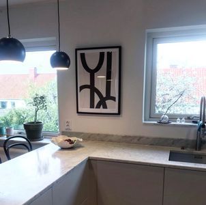 Stort och socialt kök med all utrustning, dvs. ugn, micro, diskmaskin.