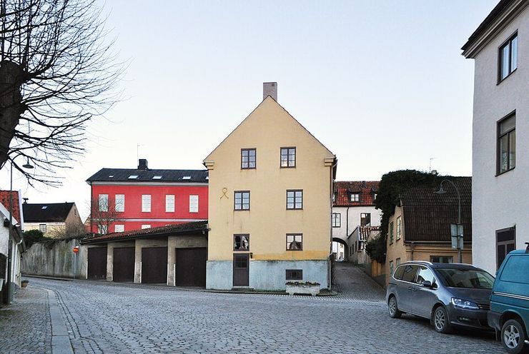 Huset ligger mitt i Visby innerstad i en liten gränd nära S:t Drottens kyrkoruin