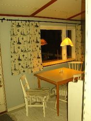 Söt liten stuga fördelat på fullt utrustad kök med vedspis och diskmaskin, allrum med